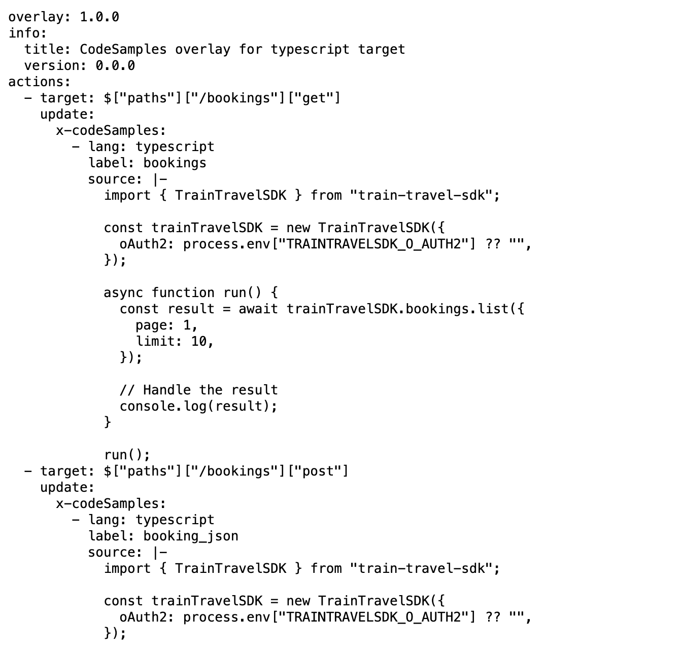 overlay: https://spec.speakeasy.com/bumpsh/bumpsh/train-travel-api-typescript-code-samples