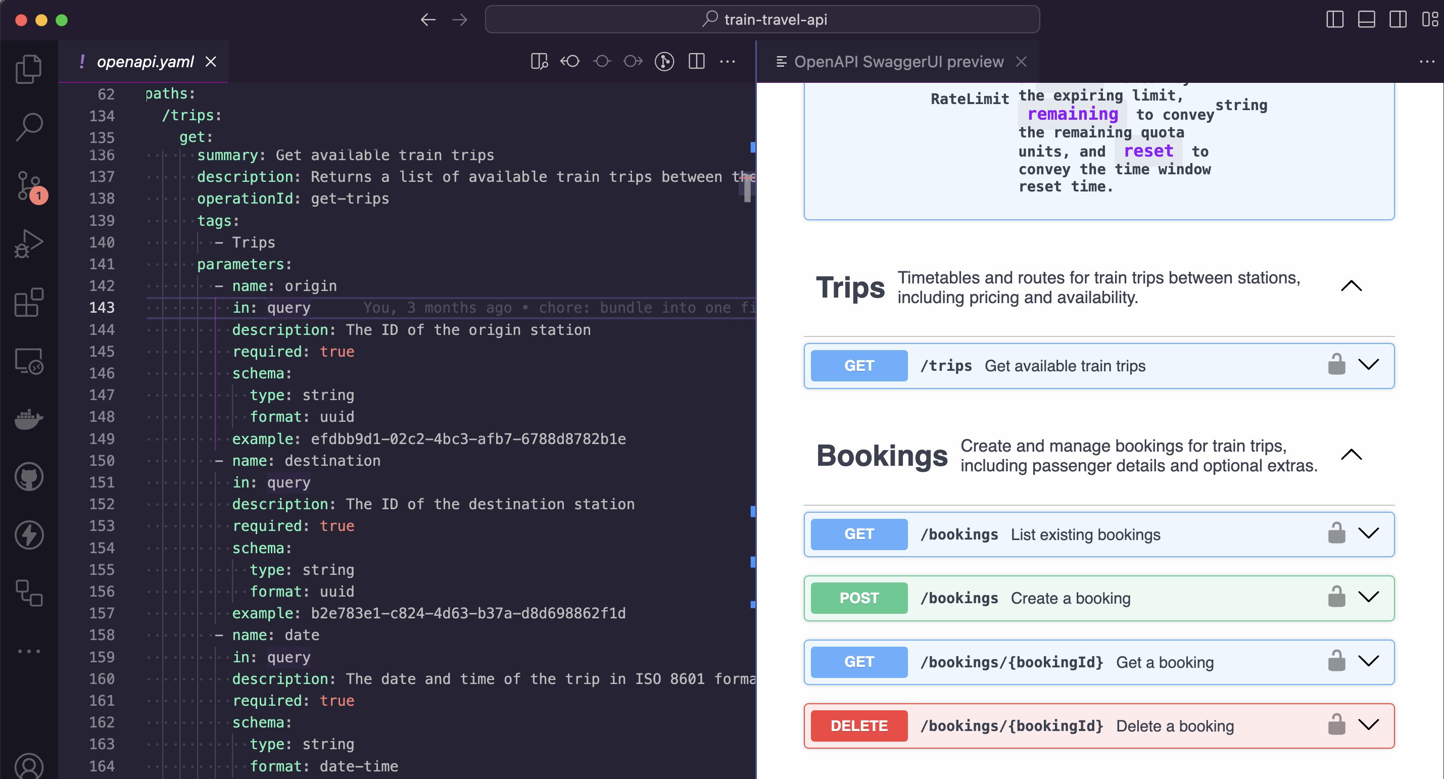 The 42Crunch team have also built an extension: OpenAPI Editor will provide IntelliSense, “Go to Definition” for $ref, and the usual preview showing SwaggerUI or ReDoc.